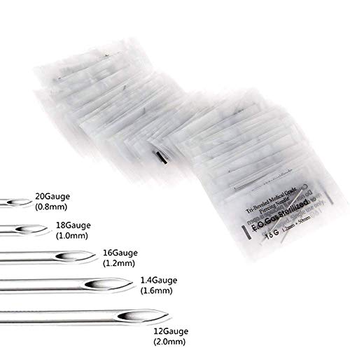 PACKAGE INCLUDING – Our piercing needles including 100pcs piercing needles, the 12G 14G 16G 18G and 20G piercing needles for you choose.Each needle comes with the sealed individual pack.