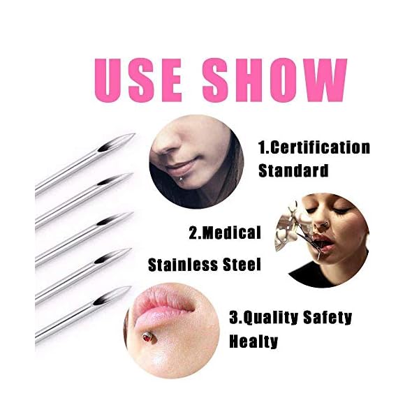 WIDE USE – Our body piercing needles have a standard-length loop bars to fit all piercing gun,piercing kit,piercing supplies.Fits for belly button ring, eyebrow, tongue, tragus, rook, labret, daith, prince albert.