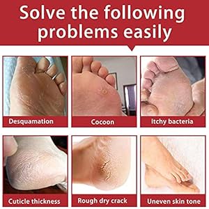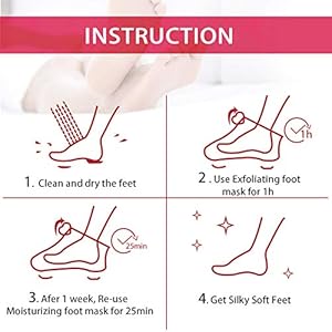 ? SIMPLE AND RELAXING TO USE—-This simple disposable foot peel mask is easy to apply and use. Universal design for any foot size and age. Before using it, clean and soak your feet in warm water for about half an hour. Tear open the mask, apply it to your feet and tighten the opening, then enjoy your feet spa!