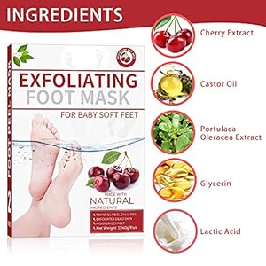 ?WORKS WELL, SMELL WELL—-Each package contains 2 PAIRS of Cherry scented foot exfoliating booties, so you can repeat the peeling in a month after the first one for best result.