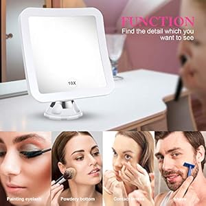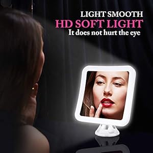 ✅ NATURAL WHITE LED LIGHTS – The magnifying mirror utilizes natural white light from environmentally friendly LEDs that provide additional illumination and help reflect real colors. The light source around the LED mirror eliminates shadows during your skincare routine. The mirror is equipped with 16 of advanced led beads, lighting up the gloomiest areas for your makeup at night and also protect your eyes under a soft, not glaring light.