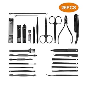PROFESSIONAL QUALITY: The manicure set includes 26 high-quality accessories made of high strength steel for versatile use. Total nail clippers set comes with a luxurious portable travel case, which make each component wear out less easily, fashion and easy to carry, and money can be saved.