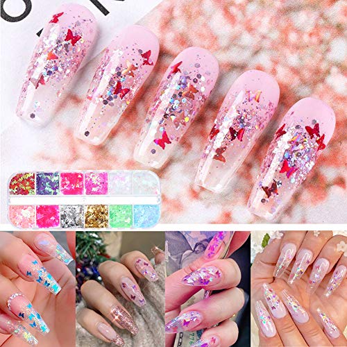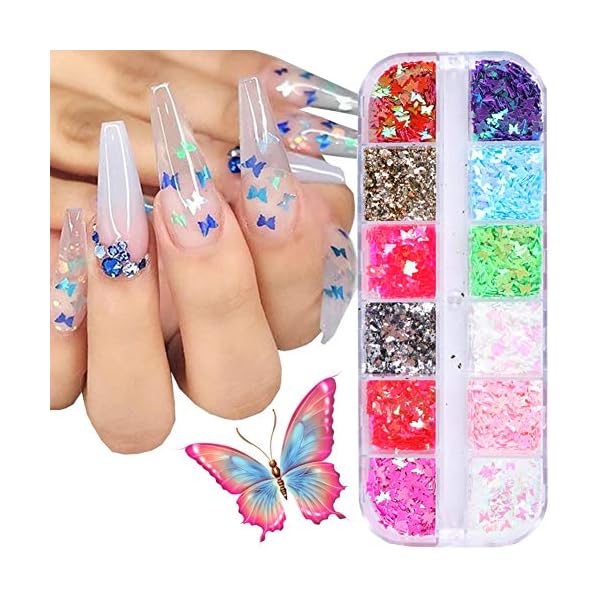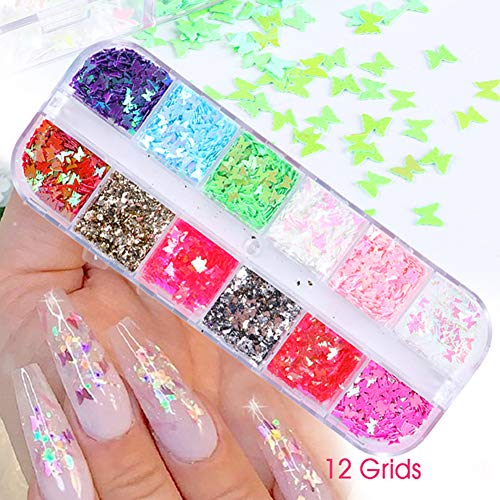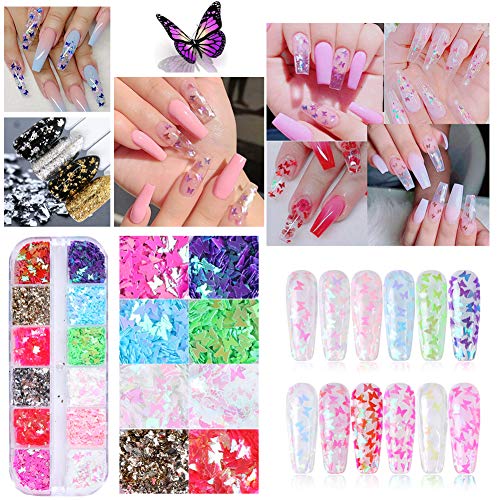 Package Contents: 1Boxes/12 Colors Glitter Colorful Butterfly for Nails