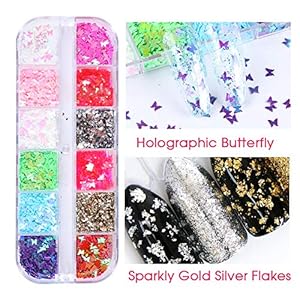 Application: glitter butterfly nail polish sequins can be used on nails, eyes, face and any part of the body, Mermaid Butterfly Bright Flash Set And make the nails look dazzling.