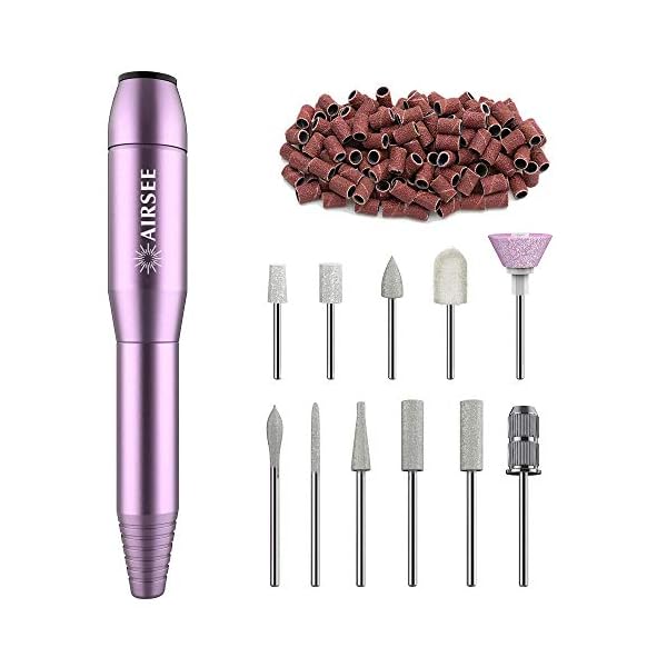 Professional Nail Drill Set: Elegant Packaging with AIRSEE logo and comes with 11pcs different 3/32” shank drill bits and 56Pcs sanding bands, multi-functional for easily grinding, carving, cutting, polishing, removing gel polish and cuticles for both acrylic nails and natural nails.