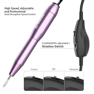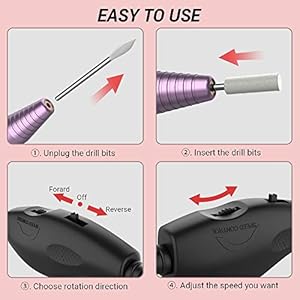 Powerful Function: Professional high-tech speed bearing and motor, It makes the electric file low heat, low noise, and low vibration. Just need to connect the power cord with efile to start working. It is professional for both home, salon, and school use.