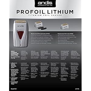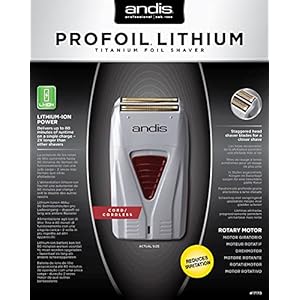 Andis Profoil lithium shaver, this high-performance shaver hugs the contours of the face with a cordless design and weighs under 5 Oz for effortless use. The Andis Pro foil lithium shaver is made with gold titanium material with a hypoallergenic foil for safe use with all skin types, including sensitive skin. A special staggered head design empowers a close, irritation-free shave. The battery-powered shaver is fully rechargeable and is designed to run for up to 80 minutes long on a single charge. Its quiet, powerful rotary motor allows for effortless use. The versatile design can be used for removing stubble as well as putting the finishing touches on fade-style hair cuts, for added convenience.