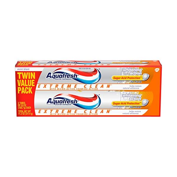 Contains Two 5.6 oz tubes of Aquafresh Extreme Clean Whitening Action