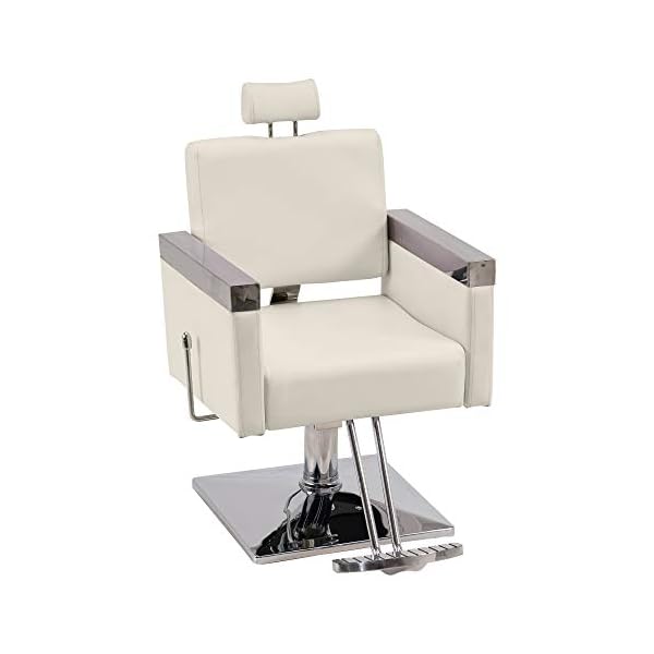 CLASSIC DESIGN: A salon chair fits anywhere with fluent shape and classic look. Modern design with stainless steel decoration of armrest brings superior durability and classic trend to fit different barbershop and salons. Two colors(Black/Off White) for your choice.