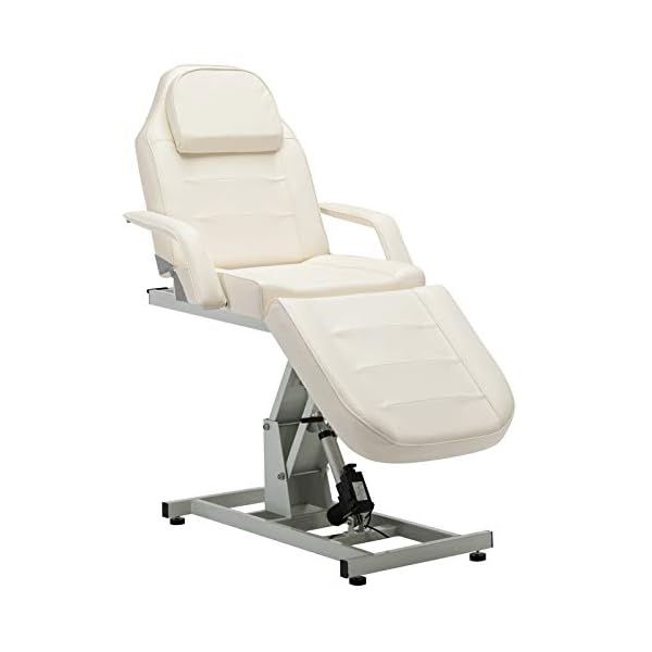 This electric beauty bed is Made of high quality steel frame, this multifunctional and ergonomic beauty lounger is very sturdy. The steel base is heavy, anti-slip and it increases the stability of the chair. With remote control, you can adjust the height easily and quickly. It is also possible to adjust the backrest angle and the legrest to achieve an ideal sitting position. The two armrests are extendable up to 5cm and support the body optimally. The chair also comes with removable headrest and a chromed towel rail. Features Electric beauty bed in stylish design. 100% premium polyurethane (PU) synthetic leather, waterproof and oil resistant. Sturdy steel base and robust welded steel frame for great durability. Electric height adjustment with remote control. 3 Section facial bed massage tablewith infinitely adjustable backrest and legrest. Extendable armrests and removable head pad with facial hole. Automatic lock provides the table with strength and stability. Easy to clean and install. Item Specifications Type:6154-0100 Color: Black / White Material: Steel frame / PU leather Overall Dimension (sitting position): 51″(L) x 33.5″(W)x 49.6″-59.1″(H) Overall Dimension (lying position): 73.6″(L) x 33.5″(W) x 23.6″-33.1″(H) Base Dimension: 40.5″ (L) x 16.9″(W) Seat Dimension: 21.3″(L) x 24.4″(W) Backrest Dimension: 27.9″(L) x 24.4″(W) legrest Dimension: 24.4″(L) x 24.4″(W) Height of seat: 23.6″- 33.1″ Armrest Dimension: 27.5″(L) x 4.3″(W) Head Cushion Dimension: 16.9″(L) x 10.6″(W) Face Hole Diameter: 5.5″ Tilt angle of the backrest: approx. 0-60 degrees Tilt angle of the legrest: approx. 0-50 degrees Load capacity: 400lbs Rated voltage: 100V-240V / 50Hz Rated power: 75W