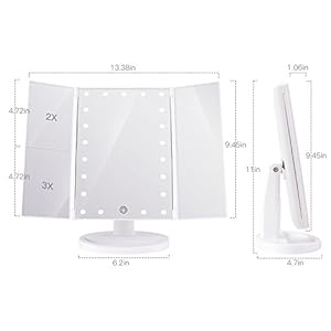 Magnification Mirror: There are 2X 3X magnification for you to see clearly your facial features and tiniest details. This lighted makeup mirror is specially suitable for eye makeup, such as eyeliner, eyebrows. It helps make up to perfection with each detail taken care of.