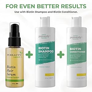 The Biotin Hair Care Authority – Pair our Biotin serum with our Biotin Shampoo and Conditioner for maximum hair support. Add this to your daily routine of using Pureauty’s Shampoo & Biotin Conditioner for a full spectrum approach to thicker looking hair.