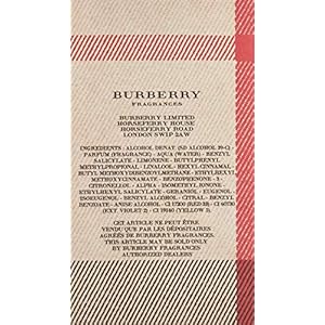 Burberry London Eau de Parfum is a stylish floral-fresh fragrance. The scent features tender top notes of elegant rose and a sweet heady blend of honeysuckle. Deep heart notes of tiare flower, jasmine and peony are uplifted with a whisper of fresh clementine zest. Solar notes of sandalwood, musk and patchouli add a subtle warmth to create a distinctive and inspiring fragrance. Presented in a glass bottle with check fabric cover.
