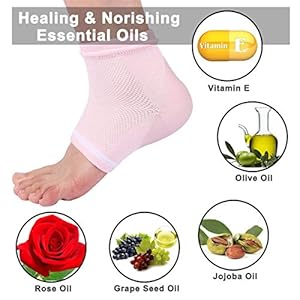 ♥ BOTANICAL GEL: Spa Moisture Heel socks with botanical gel lining in heels part are rich in vitamin E and mineral oils (jojoba oil, grape seed oil, olive oil, etc). They can constantly moisturize your heels to a natural and healthy look, nourish the smooth, and increase flexibility