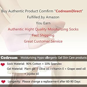 ♥ LOTION INFUSED SOCKS: The interior silicone heel pad keeps the lotion where it belongs on your heels. Gel lining in heels part speed up and enhance the moisturizing process and help your dry or cracked skin heal much more quickly than it would with lotion or hand cream alone. The gel is dermatologist tested, safe for use, and works with your feet lotion to increase the results by 90%
