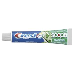Get the freshness of Scope in a toothpaste. Crest + Scope Complete Whitening Toothpaste has the benefits of Crest toothpaste with the addition of Scope freshness. Kill millions of bad breath germs* and leave your breath feeling minty and refreshed. Regular brushing with fluoride toothpaste helps prevent tooth decay by slowing the breakdown of enamel and increases the rate of the remineralization process. This toothpaste fights cavities and tartar build-up. This teeth whitening toothpaste gently removes surface stains to help whiten your teeth. *in laboratory tests