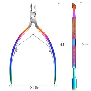 ? Perfect Jaw Design And Dual End Cuticle Pusher: The nail nipper could easily scraper the cuticle or nail gels, even in small areas around nails. The spoon-shaped and triangle designed cuticle pusher could remove residues without pulling or tugging.