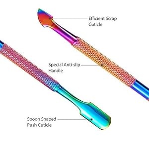? Ergonomic Handle Design, Easy to Use: Our professional cuticle remover tools set is designed with an ergonomic handle, providing you with a comfortable hand feeling. Thus you can remover the cuticles more effectively. Chameleon design,colorful nail art work.