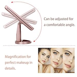 Side-view mirror panels adjust for custom viewing.3X/2X/1X Magnification used together for perfect makeup, you can see the tiniest beauty details,great for grooming brows,applying eyeliner,and tweezing.And the Base Recess can hold jewelry or cosmetics like watch, earrings, bracelets, etc. Perfect gift for ladies and girls.