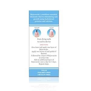 When used according to directions, Rejuvacote 1 promotes nail hardening, reduces brittleness, minimizes chipping and prevents breaking. Dramatic improvement in 2 to 3 weeks