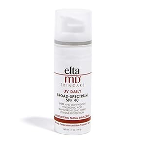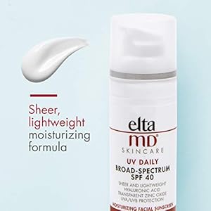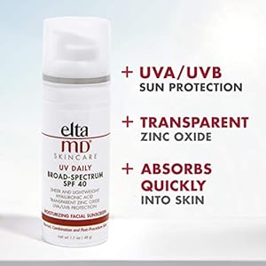 EltaMD UV Daily facial sunscreen provides serious UV protection and superior hydration join forces in this sheer facial sunscreen. This mineral-based formula contains hyaluronic acid to boost moisture retention and diminish fine lines. Formulated with zinc oxide, this lightweight face moisturizer is non greasy and rubs into the skin so easily that it can be worn alone or under makeup.