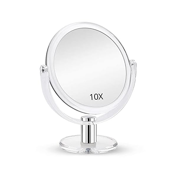 360° SWIVEL MIRROR- The 360° swivel joint allows easy toggling between 1x and 10x magnification for great viewing at any angle, the dual sided magnifying makeup mirror provides a clear reflection from every angle