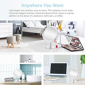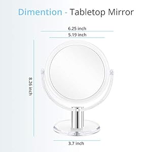 ELEGANT MAKEUP MIRROR – This two sided tabletop makeup mirror looks extremely elegant and has a beautiful glossy finish, the transparent appearance makes this dual sided magnifying mirror a great addition to the decor of a bedroom, bathroom, or office
