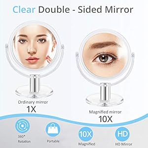 DOUBLE SIDED MAGNIFYING MIRROR – 1x and 10x magnifying mirror, classic dual-sided design makes this makeup mirror much more easier to get a flawless makeup look. Our magnifying makeup mirror 1x 10x with stand to help the two sided mirror keep stabilization when your rotate this makeup mirror