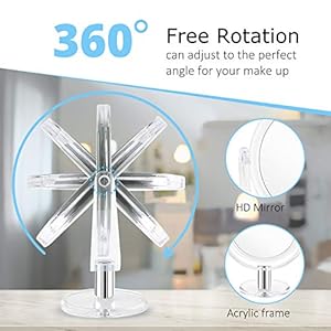 10X MAGNIFYING MIRROR- The 10x magnifying mirror works great for touch-ups, details and other beauty treatments. Makeup mirror 10x helps you to make precise makeup applications, such as applying contact lenses and tweezing facial hair & eyebrow, also ensures no more awkward blending or mini flaws