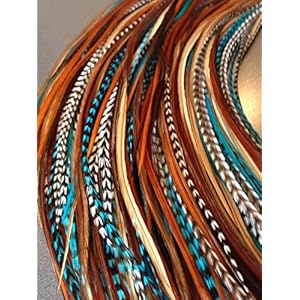 20 Loose Feather Hair Extensions in Turquoise Natural Browns