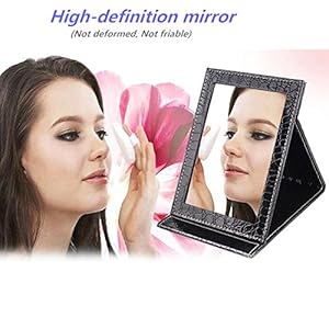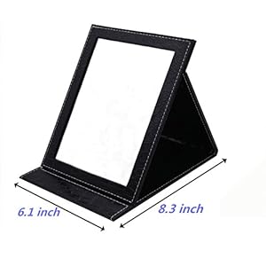 Sturdy and Durable – portable Folding Mirror Made from premium PU material and mirror glass, The plastic leather cover can be used as a stand for the mirror and it can completely wrap it around the mirror to protect the mirror when not in use.Note: The mirror is fragile. If the mirror breaks, we will refund or replace it.