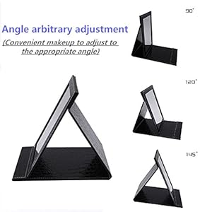 Multi Foldable Angle design,90 degree-120 degree-145 degree, alllow you to set mirror down and adjust to perfect angle leaving your hands free when applying makeup and seeing face close up