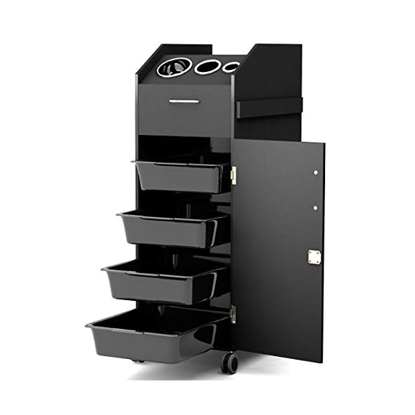 【3 Stainless Steel Hair Dryer Holes for Beauty Cart】Do you need different hair tools like hair dryers for your work? Our beauty cart has 3 stainless steel holders for different beauty tools like the jumbo curling iron, blow dryer and regular curling iron., stainless steel material can effectively prevent rust, and 3 holes are enough for daily work, the upward position is convenient for you to take the tool. It is helpful to your work.