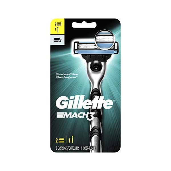 The Gillette MACH3 men’s razor is built for precision and made for comfort. The three DuraComfort blades provide a comfortable shave and feature an open-blade architecture for easy rinsing. Along with ease and comfort, the stronger-than-steel blades stay sharper longer (vs. Sensor3) for added durability. The premium MACH3 handle fits all MACH3 blades, and each blade refill is engineered to last for up to 15 comfortable shaves, allowing you to get the most out of every blade. For a quick and efficient shave, the MACH3 has an ergonomic handle with a rubber grip that gives you control with a sleek, stylish look. The long-lasting lubrication strip glides the razor smoothly for a great shaving experience. Soft microfins gently stretch and smooth skin to prepare hairs to be cut for a close shave. The MACH3 feels better than a disposable, even on the tenth shave (overall preference vs. Sensor2 disposable).