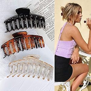?Product Information: Tortoise pattern claw clip barrettes for women. 3pcs large claw clip for women and girl. 3pcs different color: Leopard Print, Black, Champagne , like the picture shows). Length:4.3 inches.
