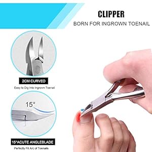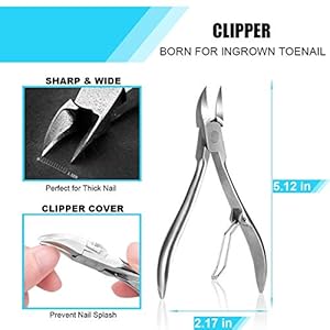 【Professional Clipper For Ingrown Nail】Dualeco professional clipper is specially designed for ingrown & thick toe nail. The 15 degree blade edge fits the arc of nails perfectly which can precisely trim ingrown nails or sharp pieces at the corners without hurt; The sharp blade and 20mm edge can deep into paronychia to cut ingrown and thick toenail easily; The updated plastic cover can prevent the splash of thick nail.
