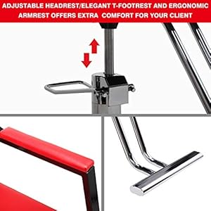 ?【Stable and Sturdy Construction】This chair not only ensures a stable support for your customers but also provides a reliable use for long term. Heavy duty hydraulic pump with over-sized chrome base prevent wobbly from various movements. The footrest provides support and allows for easy positioning of the client. It is also designed with handrails that could free your hands and prevent you from falling down.
