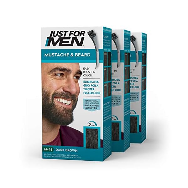 Just For Men Mustache & Beard, dark brown (M-45) pack of 3, is beard coloring that makes getting rid of gray facial hair easy. Unlike other dyes, it restores your natural beard color, thicker and fuller look
