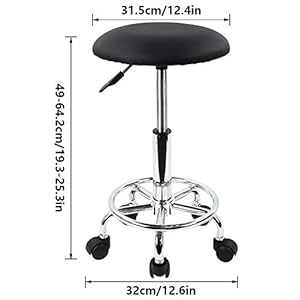 Height Adjustment salon stool: The Seat Height adjusts from 19.3″ to 25.3″,Seating diameter: 12.4″