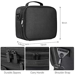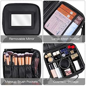Smart Design: Built in several adjustable dividers and makeup brushes slots, you can design yourself internal compartments by adjusting padded dividers to fit different cosmetics and keep them perfectly separated and organized without shifting places. The inner size without dividers is 9.12*7.87*2.75 inches.