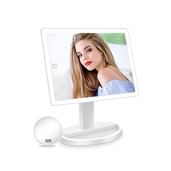 1.[Upgraded Oversized Light up Vanity Mirror with lights] Funtouch large lighted makeup mirror with lights and magnificationis the biggest size makeup mirror in the market. 14.56 inch long by 8.97 inch wide, which provide a big and high definition clarity wide-angle viewing, helping you achieve a flawless professional makeup.