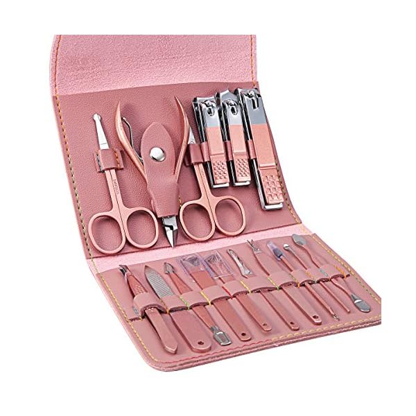 【PACKAGE INCLUDED】16 pcs Nail Clipper Kit. Hand care(small nail clipper, diagonal nail clipper, cuticle nipper, double-head nail cleaner, nail file, dead skin fork, peeling knife, );Foot care(Larger nail clipper, flat pedicure knife, diagonal pedicure knife );Facial care(eyebrow scissors, eyebrow tweezers, nose scissors, ear spoon, acne bowl needle, acne needle)