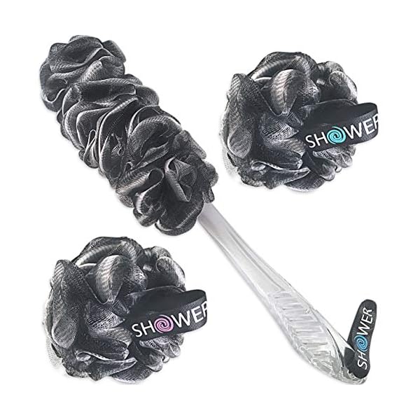 – 1 PLUS 2 PACK: The incredible combo of 1 long charcoal back brush plus 2 extra large bath sponges (75 grams each) comes in a neutral charcoal black for both men and women to complement any bath or shower