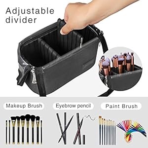 Adjustable Dividers: This Makeup Brush Bag special design with 2 dividers, you can adjust as needed. Maximize the use of space.