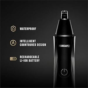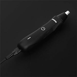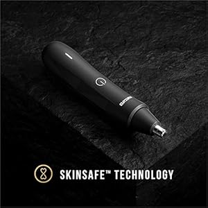 FEATURES/BENEFITS: A premium 9,000 RPM motor powers a 360° rotary dual-blade system with SkinSafe Technology. Maneuver the hypoallergenic stainless-steel cone tip with confidence against pulls, nicks or cuts. The powerful 600mAh li-ion battery holds charge for up to 90 minutes of use and is easily charged with a convenient USB cable and AC adapter. Intelligent design features a 23-degree angle to match the contours of the nose and ear for precise hair trimming.