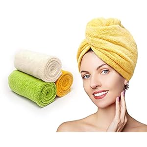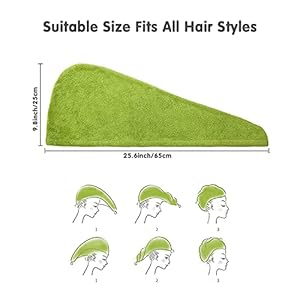 Suitable for All Hair Types: Measures 9.8×25.6 inch(65x25cm) generous large hair towel for long hair. No matter your hair is curly or straight, thick or thin, our hair turban for wet hair contains 3 counts in different colors: white, yellow, and green, meets different needs of your family members