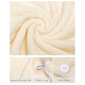 Durable Quality Hair Towel: Our hair drying towel is firmly sewed to prevent unraveling and ripping after long-time use. Features with stretchy elastic band loop and sturdy button, convenient twist hair towel for women to use in the gym, traveling, sports, yoga, hotels, pool parties and professional hair salon
