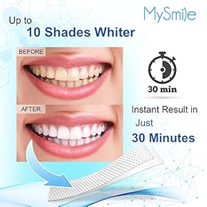 30 MIN FAST RESULT, UP to 10 SHADES WHITENER teeth whitening – Our white strips make your teeth whitening experience super-fast, just 30 minutes per day and up to 10 shades whiter after 14 applications. Most customers experience 1 shade or more teeth whitening results after the 1st application of MySmile Tooth Whitening Strips.