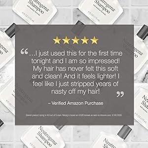 6-fluid ounce bottle of Neutrogena Anti-Residue Clarifying Shampoo to help remove up to 90% of heavy, dulling residue caused by shampoos, conditioners & styling products