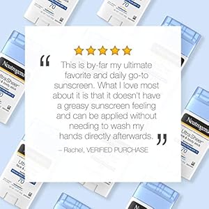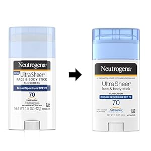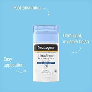 1.5-ounce Neutrogena Ultra Sheer Non-Greasy Sunscreen Stick with SPF 70 for lightweight broad-spectrum UVA/UVB protection from sun damage